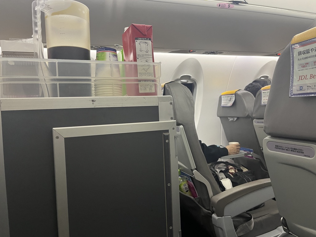 IBEXエアラインズでは、他の航空会社と同様に安定飛行に入ってからドリンクサービスが行われます。