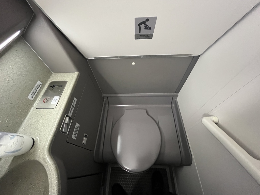 飛行機が小型なので、必然的にトイレも狭く居心地は良くありません。