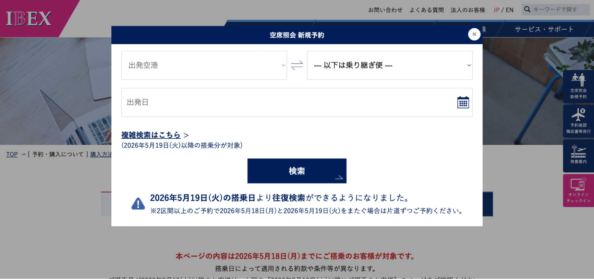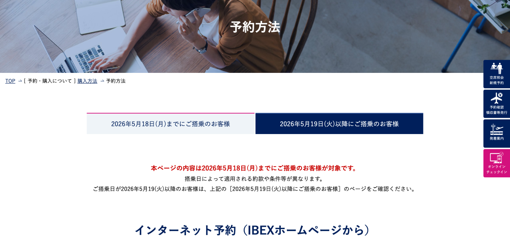 IBEXエアラインズの航空券は、公式HPから簡単に予約ができます。